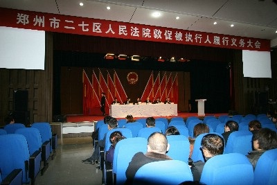 会议由二七区法院常务副院长蒋锋主持。二七法院副院长信承平通报了中央政法委、最高法院、省委政法委、省高级人民法院对于本次集中清理执行工作以及解决执行难问题的相关政策和本院准备采取的具体执行措施。希望各位被执行人要认清当前执行工作的形势,端正态度,放弃侥幸心理,充分认识到不履行生效法律文书确定义务的严重后果,积极配合人民法院的执行工作。二七法院将会加大执行力度,进一步强化执行措施,紧紧依靠党委领导,积极争取政府支持,实行阳光执行、和谐执行、集中执行的措施,充分发挥联动制约机制的作用,使不讲诚信的被执行人无处遁形,继续加大启动刑法程序的力度,加大查找被执行人财产的力度。采取一切可以采取的措施,穷尽执行手段,确保有执行条件的案件得到执结。与新闻媒体紧密配合,加大曝光力度。