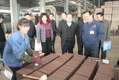 图为:新密法院邀请市人大常委会副主任程新建等领导一起到真金耐火材料有限公司走访。