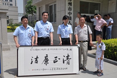 6月1日早上,一对父子向我院民一庭的法官送来了写着“清正廉洁”的匾,向他们表示感谢。郑淑芳与河南省人民医院人身损害赔偿纠纷一案,二审经我院民一庭审理,在民一庭彭庭长和合议庭成员的共同努力下,郑淑芳顺利地拿到了赔偿款。