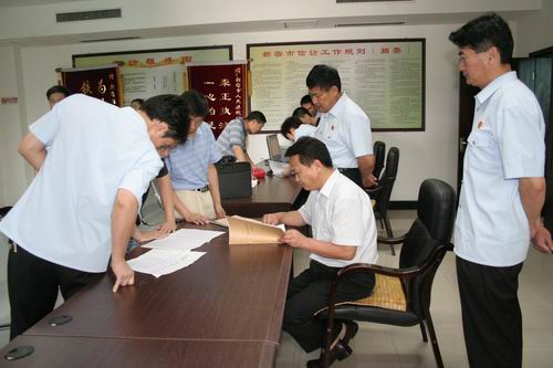 7月4日,河南省高级法院督查组一行6人对新密法院2009年办理十件实事的情况进行了督导检查。