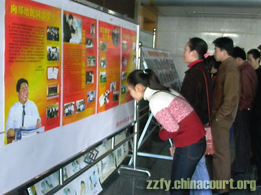 日前,郑州中级法院紧密结合优化经济发展环境活动,掀起向新时期领导干部模范代表郑培民学习热潮。学习中,广大干警结合审判工作,积极发扬党的优良传统,牢记全心全意为人民服务的根本宗旨,坚持多办案、快办案、办好案,收到了良好的学习效果、工作效果和社会效果。