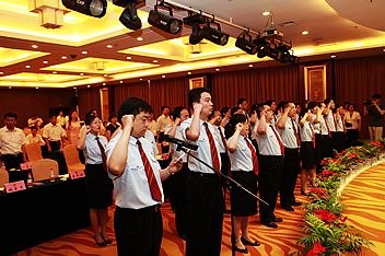 6月14日,荥阳市人大召开四届常委会第二次会议,会议听取和审议了荥阳法院党组书记、院长余剑锋提请任免法律职务的议案和提请任命法律职务的说明,会议全票表决通过了荥阳法院27名法律职务的任命,市人大常委会主任张淑霞为新任命法律职务的人员颁发了任命书。随后,新任命人员在余剑锋院长的带领下,举起右拳,面..