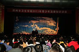 为了贯彻落实学习“爱民为民好法官詹红荔”活动精神,2011年11月16日1下午4点,二七法院少年庭承担的郑州市卫生学校青少年法律知识讲座开讲。少年庭庭长王群岭,以《培养法律意识期盼明天幸福》为主题,从法的概念、二七区未成年人犯罪的现状、未成年人犯罪的成因。未成年人犯罪危害性以及如何预防犯罪以及如何避免被犯罪..