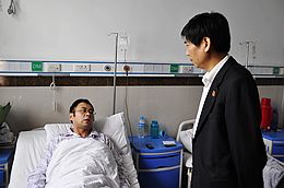 9月29日上午,中院党组成员、政治部主任高延安受中院党组书记、院长王新生委托,带领政治部副主任丁岩、宣教处处长郭晓堃等同志前往郑州市第三人民医院看望惠济区法院因病住院的干警李磊同志。9月21日,李磊因办理一起人身损害赔偿案件加班到深夜,第二天早上七点就赶到单位继续工作,当天上午开庭前,李磊晕倒在地..